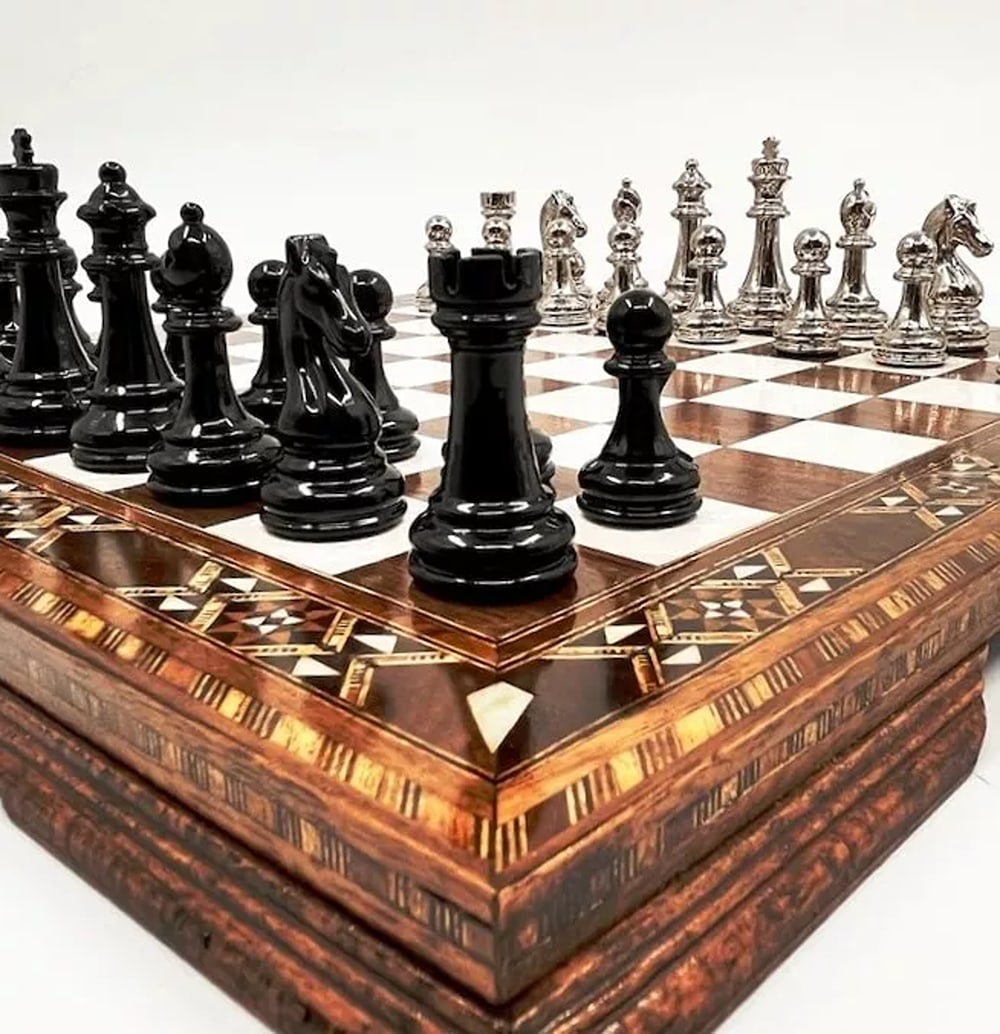 SoldPremium Marble Chess Set & Pieces | Luxury Marble Chess Set withStorage Case | Handmade Chess SetPremium Marble Chess Set & Pieces | Luxury Marble Chess Set withStorage Case | Handmade Chess Set and PiecesMeasures approxKing 3.5” queen 3” bishop 2.75” knight 2.75” rook 2.7See Sold Price