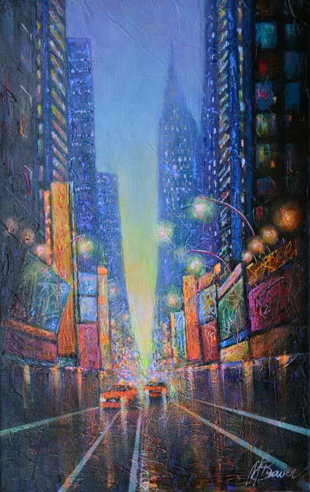M. BRAVER **TIME SQUARE ** SIGNED ORIGINAL ACRYLIC