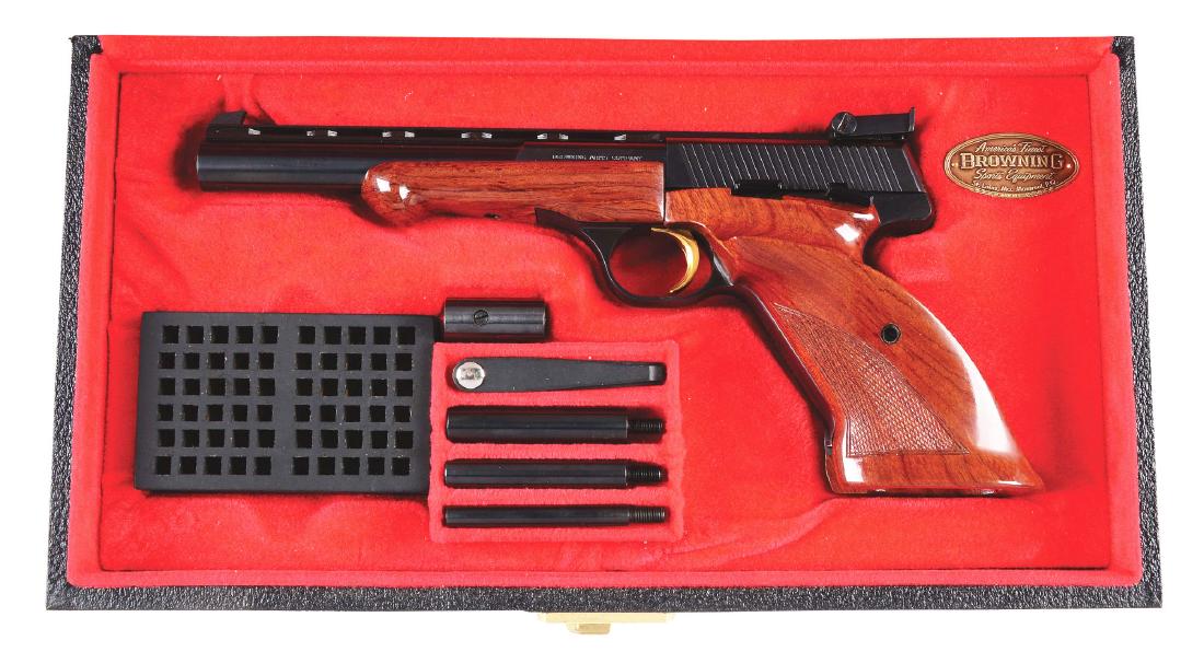 (M) Cased Browning Medalist Semi-Automatic Pistol.