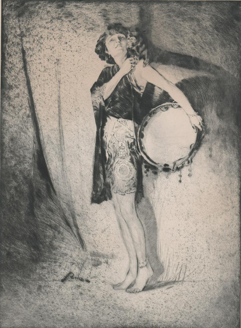 M Paul Roche Drypoint/Etching [Dancer w/Monkey]