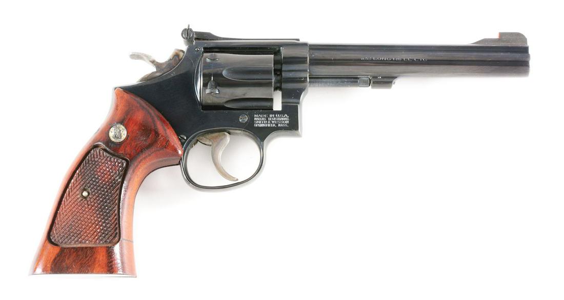 Antique Colt SAA Revolver, SN 133673 in .44/40 caliber with etched panel, manufactured circa 1890.5 days Left1 of 2 Consecutive numbered Colt SAA Revolvers, SN 354031, 1st generation, circa 1930. Info shows it6 days Left1 of 2 Consecutive numbered Colt SAA Revolvers, SN 354030, 1st generation, circa 1930. Info shows it6 days LeftOutstanding Engraved Smith & Wesson K22 Revolver, SN K 101947, carved steer head Pearl grips,5 days LeftHandsome Engraved Smith & Wesson, Model 27-2, .357 Magnum caliber, 6-shot Revolver, SN N35009 with 85 days LeftColt Python .357 Magnum caliber Revolver, SN 45095E, 6-shot revolver with a 6?? barrel. Excellent5 days LeftSmith & Wesson, Pre-Model 19, DA Revolver, .357 Mag caliber, SN 27244, four screw , excellent6 days LeftColt SAA 2nd Gen Revolver, .45 caliber, SN 81424SA, 7 1/2" barrel, two-piece hard rubber stocks,6 days LeftSmith & Wesson, Model 586, .357 Mag caliber Revolver, SN ADC0398, manufactured 1983 with 6" barrel.6 days LeftColt Python .357 Magnum RevolverApr 25, 2026U.S. Firearms Single Action Army .45 LC RevolverApr 25, 2026SMITH & WESSON US ARMY M1917 REVOLVER CAL .45 ACP5 days LeftSmith & Wesson, Model 19-3, DA Revolver, .357 Mag. caliber, SN 4K98400, nickel finish, 4" barrel,5 days LeftFRENCH MODEL 1873 DA REVOLVER, 11MM CALIBER, VERY GOOD CONDITION5 days LeftSmith & Wesson, Model 48-7, DA Revolver, .22 Mag caliber, SN CUH3950, blue finish, 6" barrel, near5 days LeftColt, New Frontier, SAA Revolver, .45 caliber, SN 6955NF, excellent original blue finish with case6 days Left