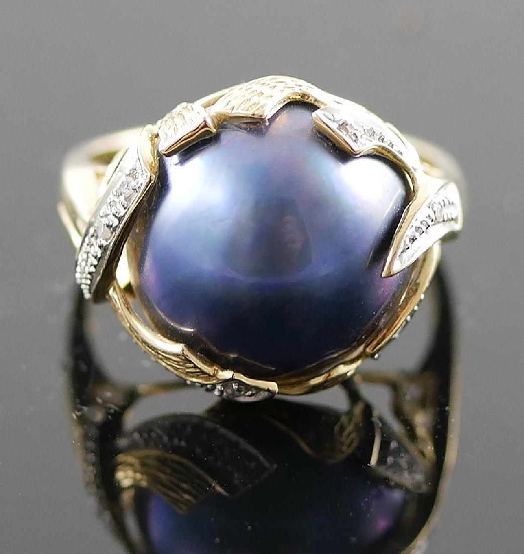 Vintage 14K Yellow Gold Mabe Pearl Diamond Cocktail Ring 21.8mm