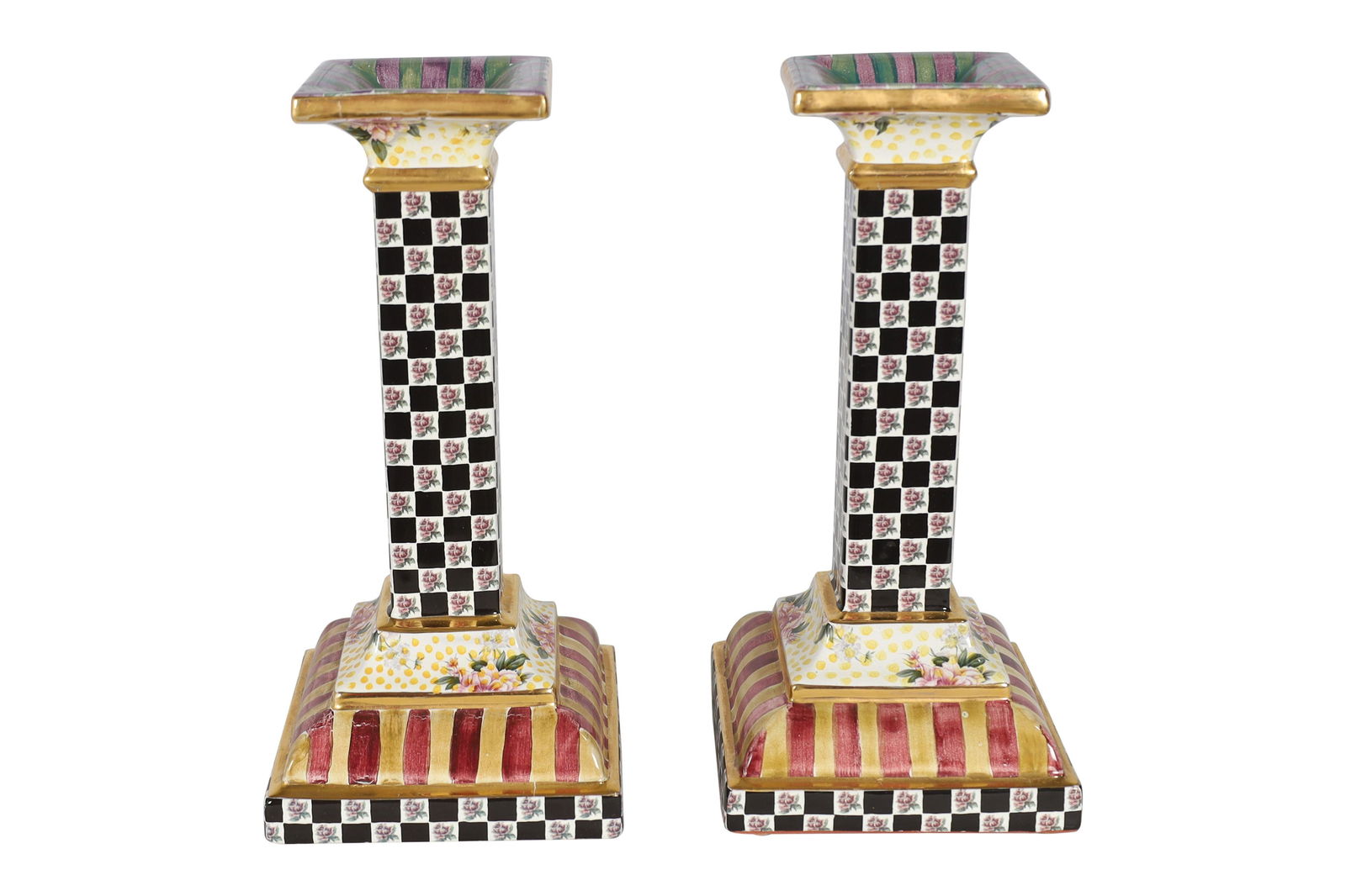MacKenzie Childs - Earthenware Candlesticks - Pair