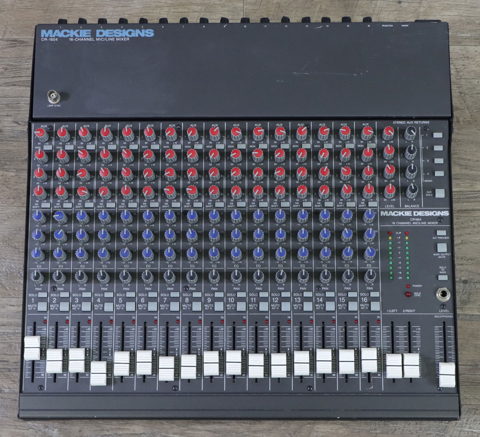 SoldMackie Designs CR-1604 16 Channel MixerMackie Designs CR-1604 16 Channel Mixer. Overall good condition. Powers on. One loose slider. Approx dimensions: 4 in. H x 17 in. W x 16 in. D. Weight: 16 lbs.See Sold Price