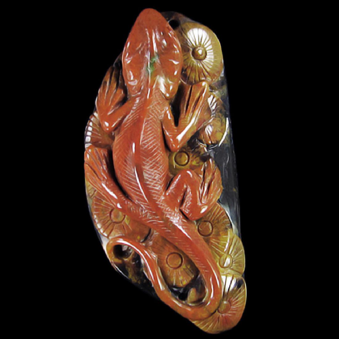 Madagascar Ocean Jasper Carved Lizard Pendant