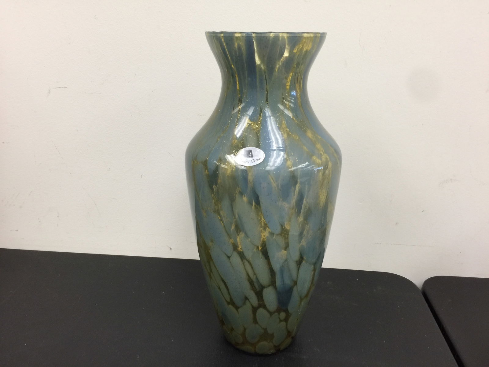 Large Vintage Murano Italy Gold Glitter Blue Art G