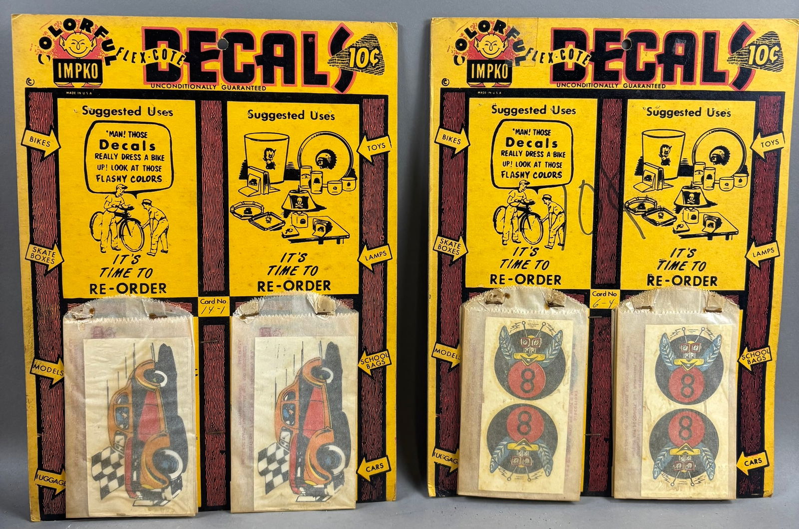 Pair Original 50s IMPKO Decal Store Displays w/ Cars & Magic 8 Ball