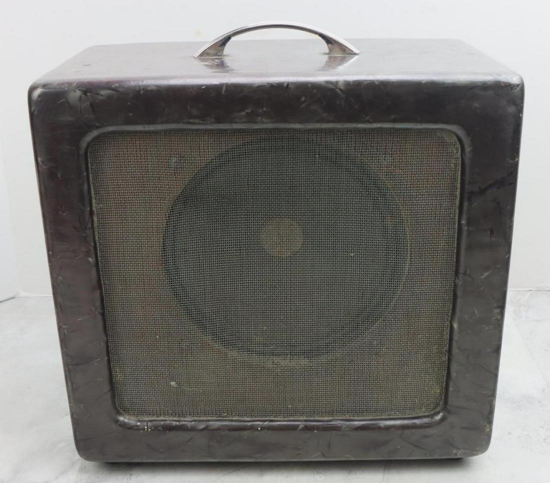 SoldVINTAGE GUITAR AMPLIFIERAMPEG PORTAFLEX MODEL B15-N. TUBE DRIVEN. 15" SPEAKER. UNTESTED. RETRO FITTED 1/4" JACK TO SPEAKER, THE XLR JACK IS STILL ON SIDE AND CONNECTED. 21" X 21" X 15". PLEASE READ CAREFULLY - Terms for PurcSee Sold Price