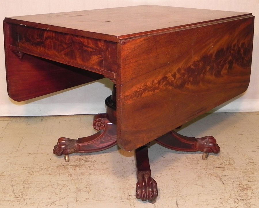 Mahog. claw foot Empire drop leaf breakfast table