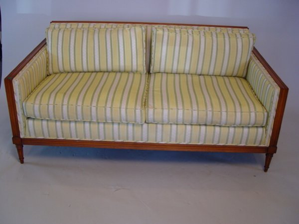 Mahogany and Upholstered Two Cushion Settee