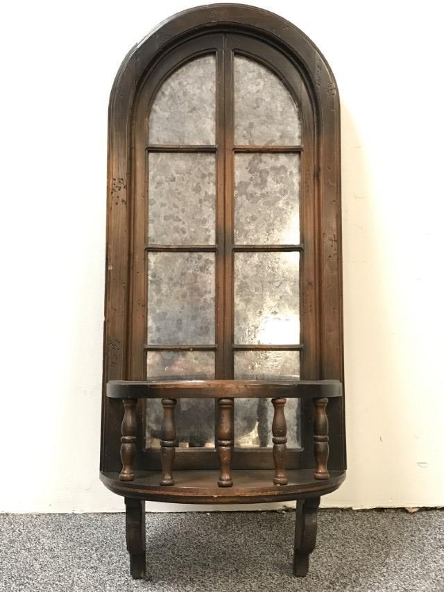 MAHOGANY ARCHED MIRROR BACK GALLERY WALL SHELF