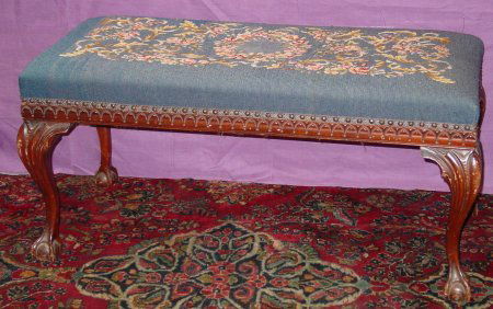 Mahogany Ball & Claw Needlepoint Window Bench