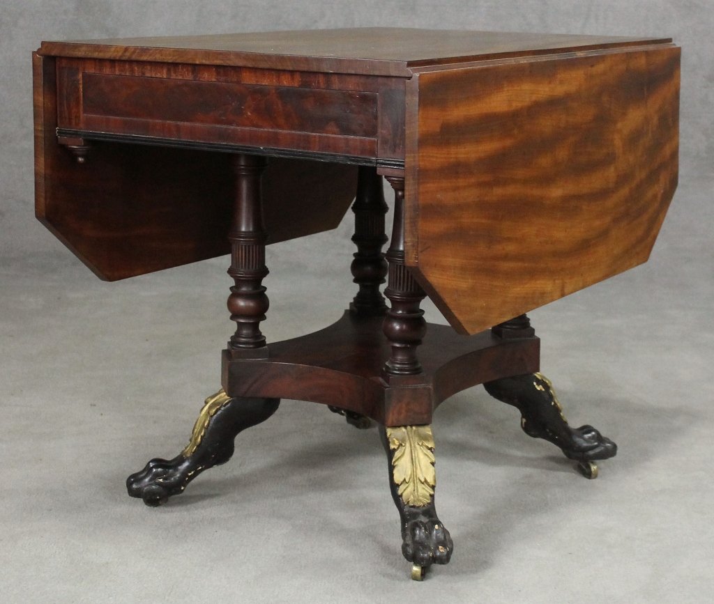 Antique Regency Mahogany Drop Leaf Table.3 days LeftEnglish Mahogany Regency-Style Sofa Table37 mins LeftAntique Chippendale Style Console or Dining Table.3 days LeftLate 18th Century Flip Top Queen Anne Console Table4 days LeftBaker Furniture (American) Regency Style Mahogany Drop-Leaf Console Table H 18.25" W 44" Depth 16"Feb 19, 2026A Federal Carved Mahogany Card Table, Probably Massachusetts, Early 19th CenturyFeb 15, 2026Philadelphia Federal Mahogany Sofa Table274 Lots Away19th Century Mahogany Acanthus Leaf Carved Drop Leaf TableFeb 16, 202619th Century Mahogany Pedestal Drop Leaf TableFeb 16, 2026American Cherry and Mahogany Drop Leaf TableFeb 25, 2026Regency Style Rosewood Drop Leaf Sofa TableMar 05, 2026Victorian Mahogany Aesthetic Movement Parlor Table4 days LeftVictorian Flame Mahogany Flip Top Table3 days LeftClassical Mahogany Pembroke Table, Ca. 1850, H 28" W 19" Depth 33.5"Feb 19, 2026Mahogany Dropleaf Table with Queen Anne Legs from Williamsburg Collection3 days LeftMid-19th Century Mahogany Drop Leaf Dining Table with Brass Casters708 Lots Away