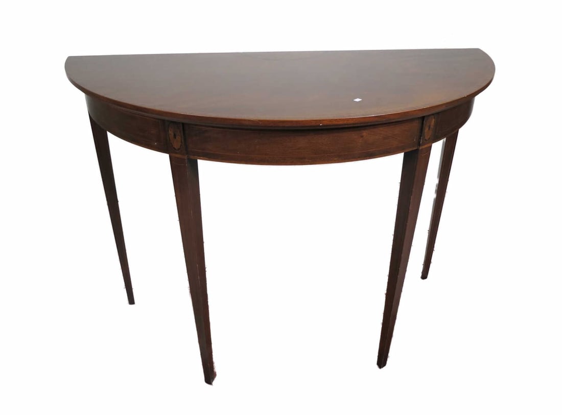 MAHOGANY DEMILUNE CONSOLE TABLE