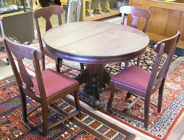 Set of Eight Vintage Mahogany Inlaid Dining ChairsOak Refectory Table and 12 ChairsBurl mahogany with banding dining set ? orig finishMar 29, 2026Century Dining Table & 8 Maitland Smith Chairs.5 days LeftMahogany Chippendale Dining Table with Chairs Ball Claw Feet Shell Carving Set6 days LeftA set of ten Regency style mahogany dining chairs5 days Left19th C. Mahogany Writing Table (29 1/4"h) with Two Eastlake Chairs, 35 5/8"h.23 hrs LeftGlass Top Table with 4 Upholstered ChairsApr 02, 2026Antique English Oak Draw Leaf Table with Four ChairsMar 29, 202618th Century Tavern Table Only - No Chairs Included. - 41"x31" - NOT AVAILABLE FOR SHIPPING,Mar 29, 2026Vintage Mahogany Nested Tables (5pc.) 27.5"X27.5"X24" - NOT AVAILABLE FOR SHIPPING, PICK UP ORMar 29, 2026Chippendale Style Mahogany Three Pedestal Dining Table, 2 Leaves 20th Cent., H 30" W 48" L 113.5"3 days LeftFrench Louis XV Oak Dining Table with 4 Upholstered Chairs Set5 days LeftArt Deco Dining Table & Chairs Set15 hrs LeftMahogany Dining Table with Double Pedestal and Ball Claw Feet Model 22086 days LeftKindel Empire Design Mahogany Dining Table with 2 Leaves4 days Left