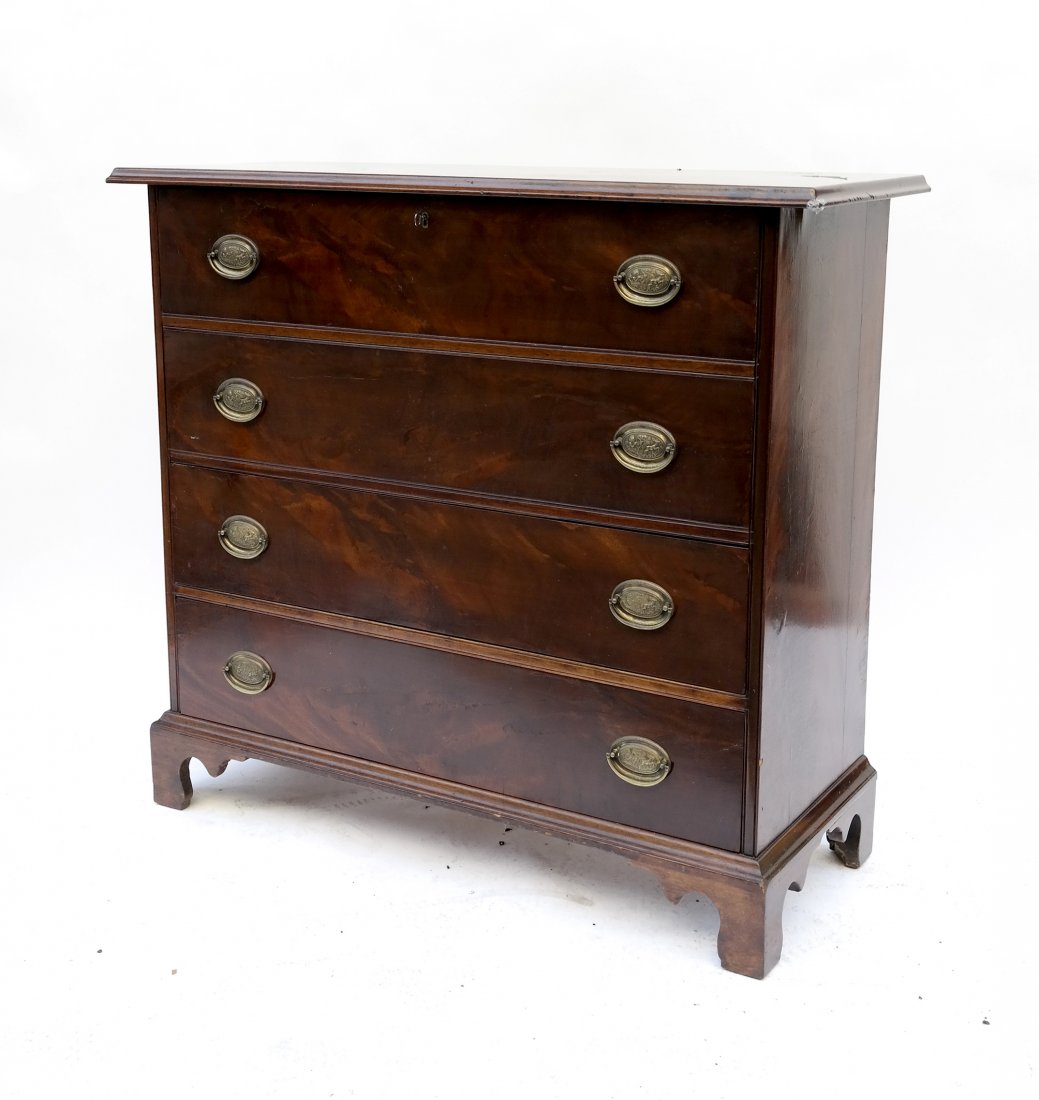 SoldSolid mahogany 4 drawer drop front chest, ca. 1940Solid mahogany 4 drawer drop front chest, ca. 1940, Kindle furniture, 37.5 in. T, 42 in. W, 22 in. D.See Sold Price