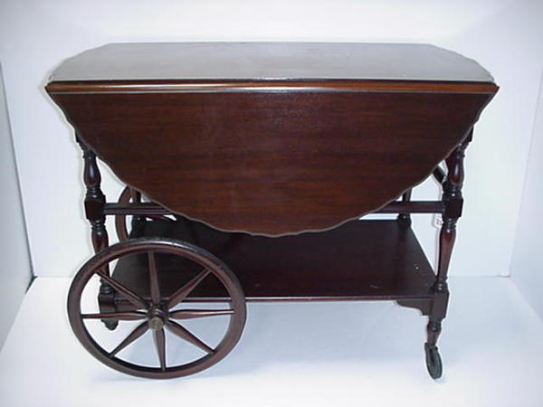 Queen Anne Style Drop Leaf Rolling Tea Cart