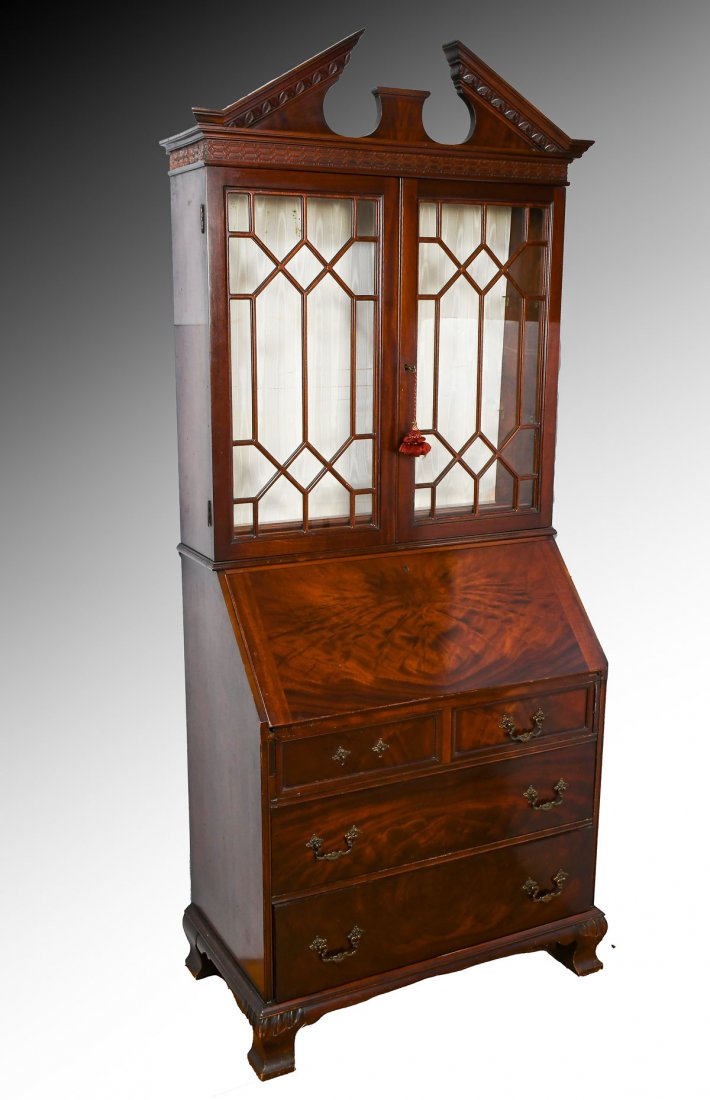 Antique Mahogany Secretary Desk.2 days LeftInlaid Mahogany Drop Front Secretary Desk H 75" W 19.5" Depth 17"Mar 19, 2026American Classical Figured Mahogany Secretary Bookcase2 days LeftMaitland Smith Mahogany Inlay & Banded Bookcase 20thCMar 07, 2026A George III mahogany bureau bookcase, third quarter of the 18th century,Mar 17, 2026A George III mahogany secretaire bookcase, late 18th century,Mar 18, 2026Fine American Federal Figured Mahogany Desk & Bookcase of a smaller Size2 days LeftGeorgian Style Flame Wood Breakfront Secretary.2 days LeftMahogany Chippendale Breakfront Cabinet with Three Glass Doors by Stickley3 days LeftAntique American Tambour DeskMar 07, 2026Mahogany Bubble Glass Secretary Breakfront.2 days LeftMaitland-Smith Mahogany Chippendale Style Secretary DeskMahogany Breakfront Bookcase Cabinet with Four Doors Chippendale Style circa 1989646 Lots AwayLarge Antique Federal Style Flame Mahogany Corner Cupboard2 days LeftA MAHOGANY WRITING-TABLE, 20TH CENTURY, OF GEORGE II STYLE4 days LeftEnglish Mahogany Linen Press (Two-Piece), ca. 1830Mar 07, 2026