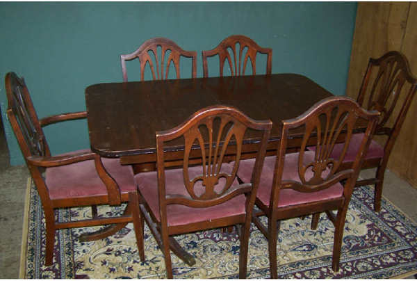 Vintage American Hardwood Dining Table and Chairs - Set of 5ANTIQUE QUEEN ANNE STYLE DINING TABLE & (5) CHAIRS2 days LeftEight Victorian Mahogany Dining Chairs (6+2), 35 1/2"h.2 days LeftDavis Cabinet Co. Dining Table SetSet of Eight George III Style Mahogany Dining Side ChairsFeb 16, 2026Victorian Mahogany Key Wind Dining Table, 65 1/2"L (closed), 2 Leaves. 20 7/8" Each.2 days LeftVintage wooden dining table with leave and ChairsFeb 21, 2026Victorian Mahogany Dining Chairs, 35 1/2"h.2 days LeftSet of Four George III Style Mahogany Side ChairsFeb 18, 2026Set of Antique Six Carved Mahogany Chippendale Style Straight Leg Dining ChairsFeb 16, 2026Mid Century Bridge Table and Three Chairs.3 days LeftSet (6) Victorian rosewood dining chairsFeb 18, 2026Square Mahogany Dining Room TableMar 03, 2026Set Of 6 Oak Dining Chairs16 hrs LeftSet (8) Duncan Phyfe style lyre back dining chairsFeb 20, 2026Set of 6 Traditional Queen Anne Mahogany Dining Chairs5 days Left