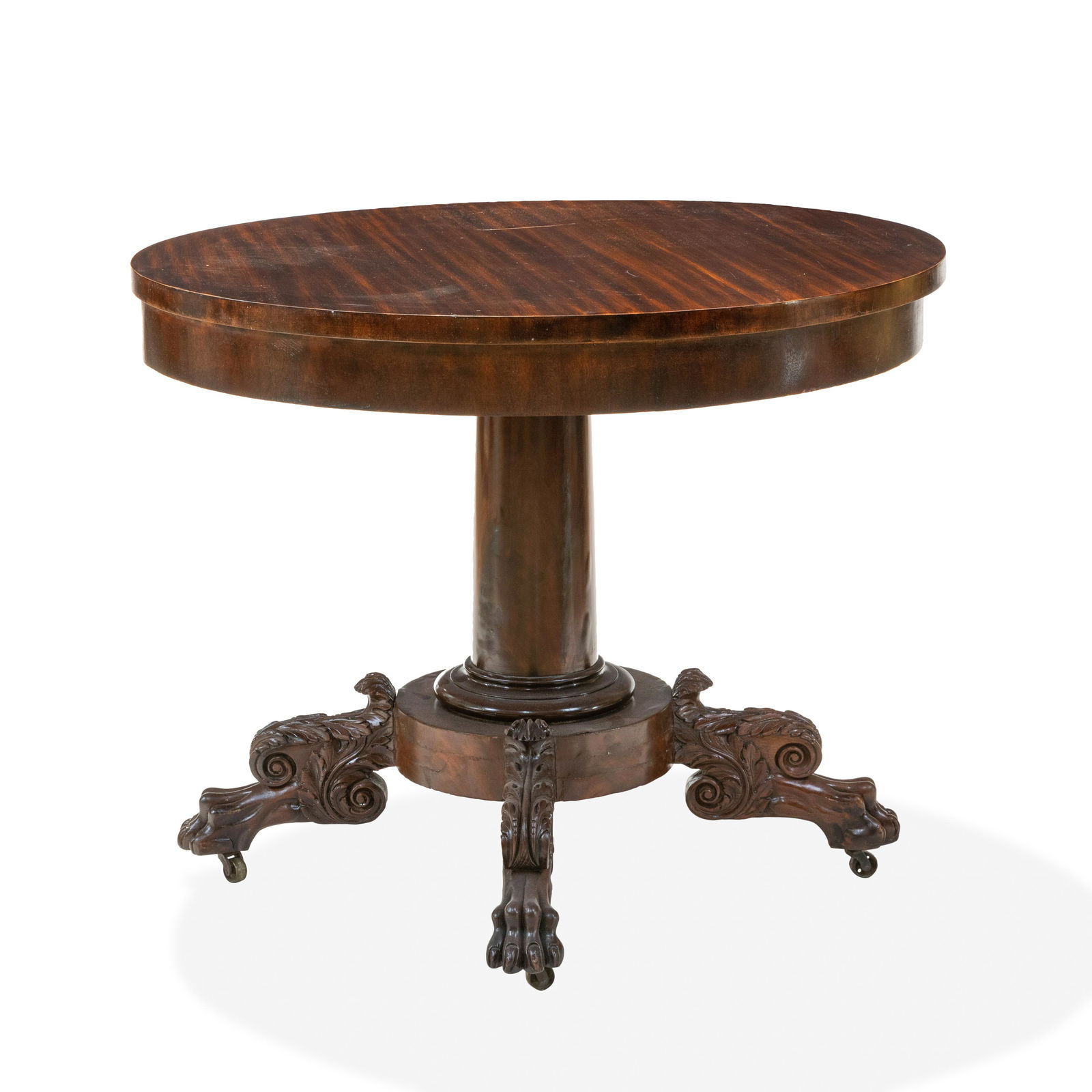 SoldLg. mahogany Empire center table w claw feetLg. mahogany Empire center table with claw feet, 42 in. D, 31 in .T.See Sold Price