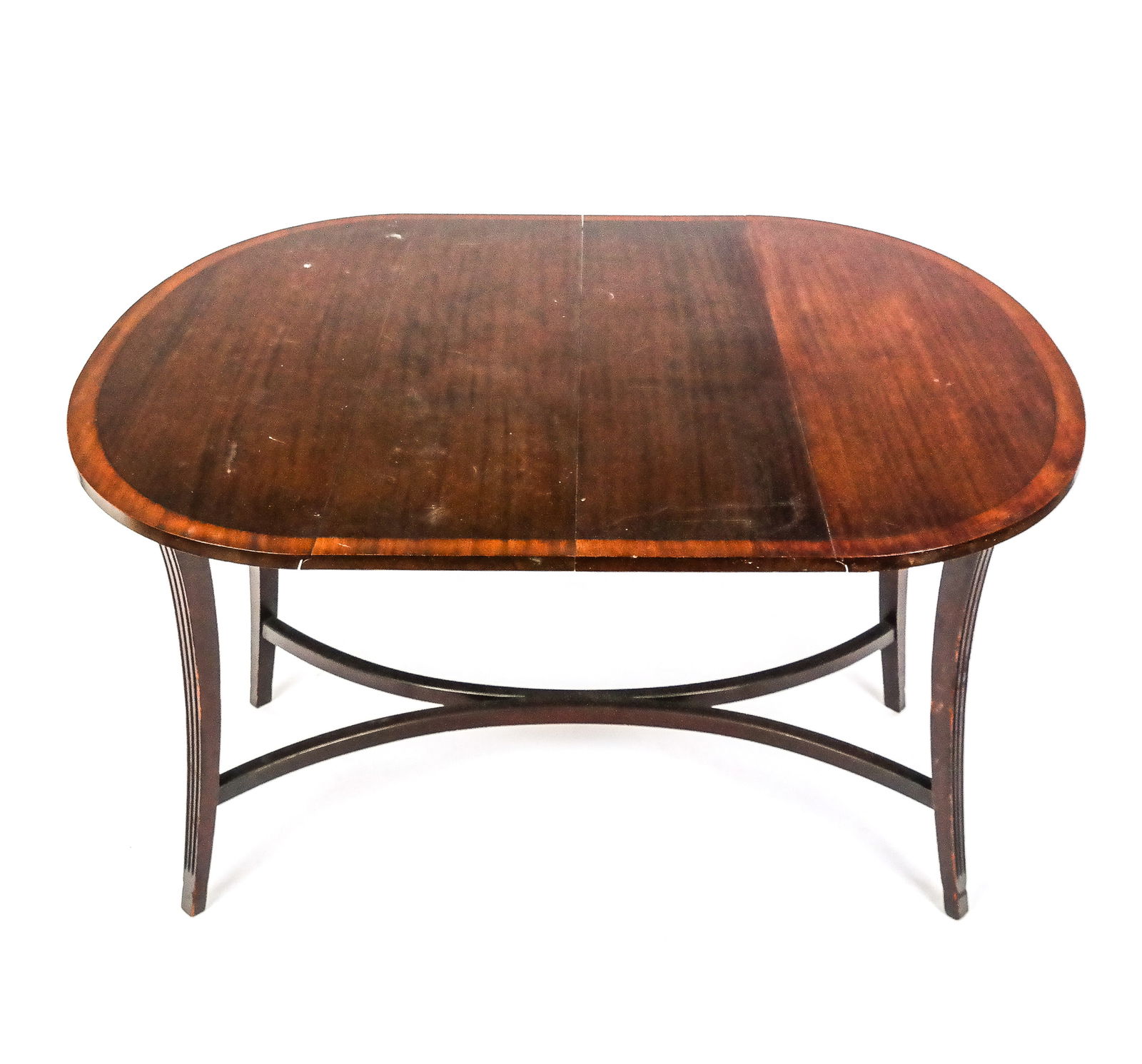 SoldA Large George III Inlaid Mahogany Extendable Dining TableA Large George III Inlaid Mahogany Extendable Dining Table English, Early 19th Century Made up of 3 gate-leg sections and retaining two additional 26-inch solid mahogany leaves. Height 29 1/2 x widthSee Sold Price