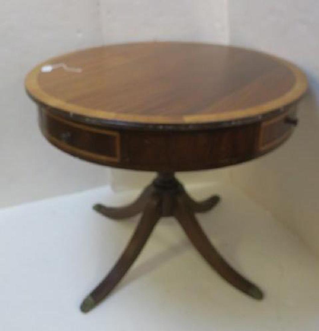 Mahogany Regency Round Drum End Table with Single Drawer and Brass AccentsBidhaus4.2(845)$1,2253 days Left