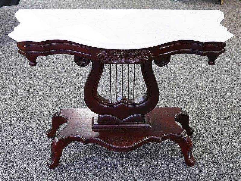 Mahogany Lyre Sofa or Hall Table Marble Top