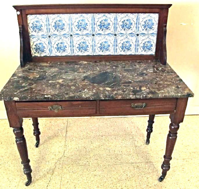 Mahogany Marble Top Sideboard With Tile Backsplash