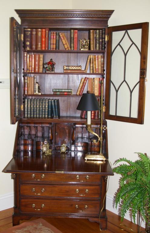 MAHOGANY SECRETARY BOOKCASE the upper case having