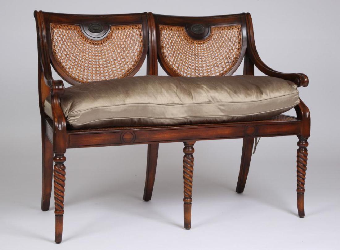 MAHOGANY SETTEE WITH CANEWORK SEAT AND BACK