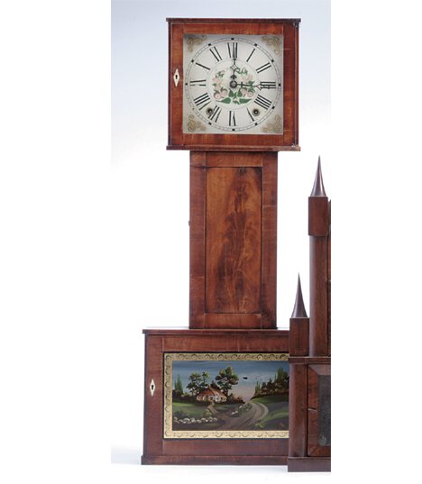 Aaron Willard dish dial shelf clock, circa 1825. Reverse painted dial door above a paneled mahoganyTremont Auctions4.6(313)$1,300(5 bids)Mar 01, 2026