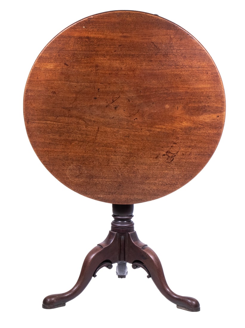 SoldA George III Mahogany Tilt-Top Tea TableA George III Mahogany Tilt-Top Tea Table Circa 1765 Height 28 x diameter of top 27 inches. Property from the Charlecote Antique Store, Kansas City, Missouri This lot is located in Chicago. NOTE: CharlSee Sold Price