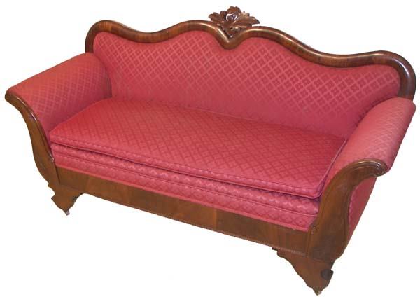 American Empire Style Mahogany Red Settee