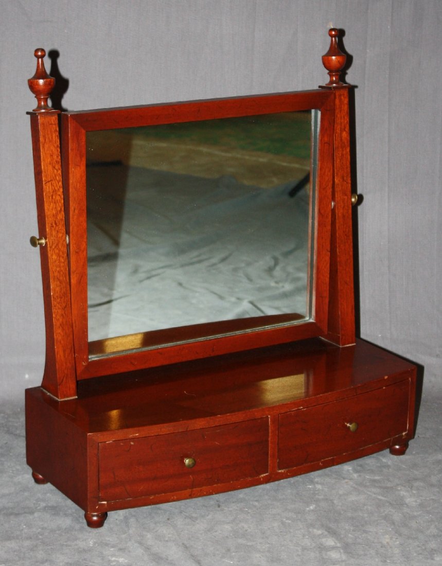Mahogany vanity mirror with 2 drawers.