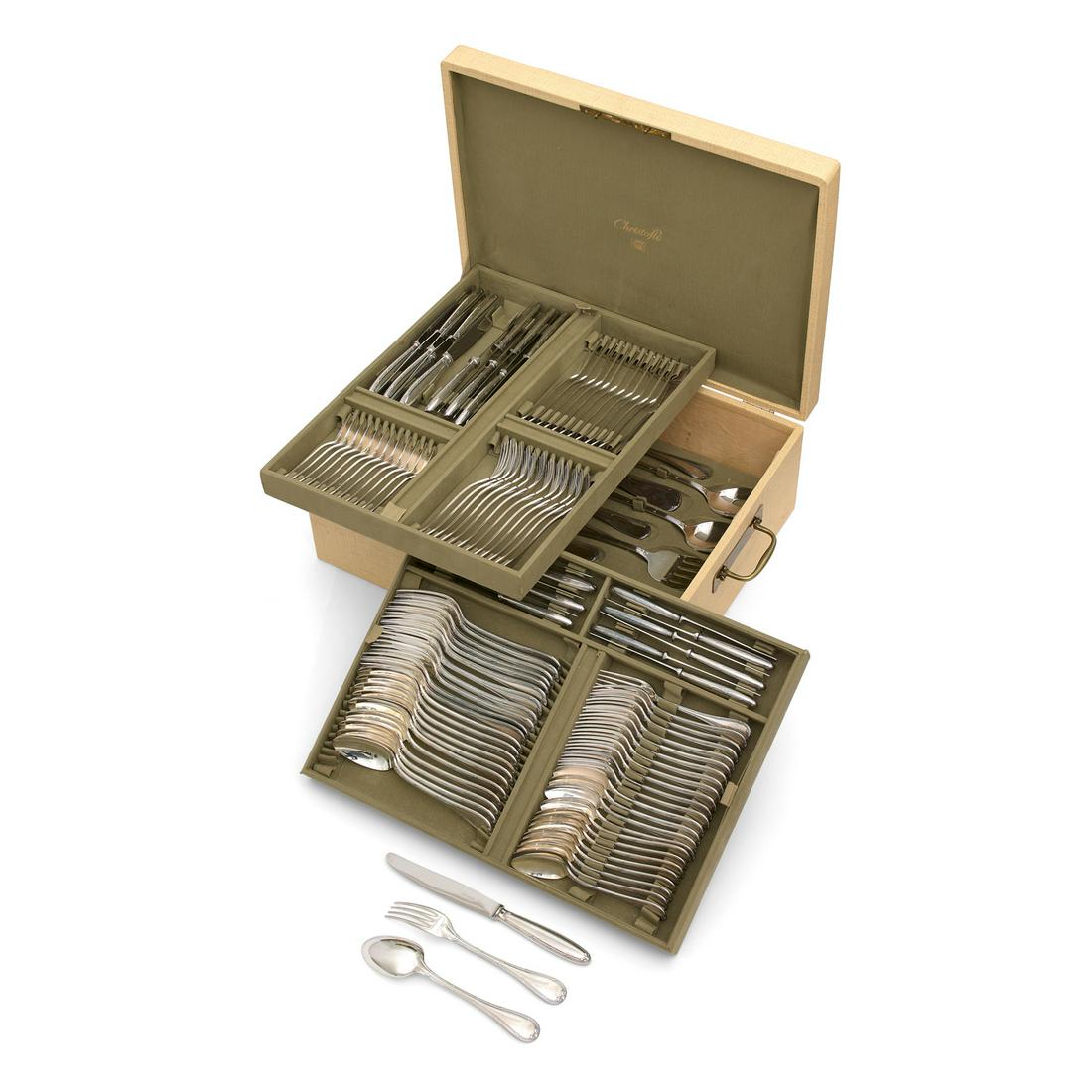 A composed lot of eight various antique French silver-plated CHRISTOFLE cutlery sets497 Lots Away104PC STERLING SILVER, REED AND BARTON, 132 T.O.W.Mar 07, 2026Christofle France "Aria" Silverplate Flatware SetMar 07, 2026Christofle Vendome Silverplate Flatware Set 121 pcs for 12 Service Unused874 Lots Away(83 pcs) Vintage Brass Tone Silver Plated Flatware SetMar 10, 2026S Kirk & Son Sterling "Repousse" Flatware Service2 days LeftSilver Plated "Baroque" Flatware 65 Piece SetMar 28, 2026Silver Plated Flatware Set in Wooden CaseMar 05, 2026Oneida Stanton Hall Sterling Flatware Sercvice2 days Left64 Piece Sterling Silver Towle "Legato" Flatware Set4 days LeftAmerican Sterling Silver Flatware ServiceMar 15, 202683 Piece MCM Sterling Silver Gorham "Willow" Flatware Set4 days LeftA vintage CHRISTOFLE 'Perles' pattern 104-piece flatware service for 12Mar 15, 2026SET OF WALLACE STRADIVARI FLATWARE, 2910g17 hrs LeftTowle "French Provincial" Sterling Silver Flatware Set of 41 in Sterling SilverJul 28, 2025Towle "French Provincial" Sterling Silver Flatware Set of 41 in Sterling SilverJul 27, 2025