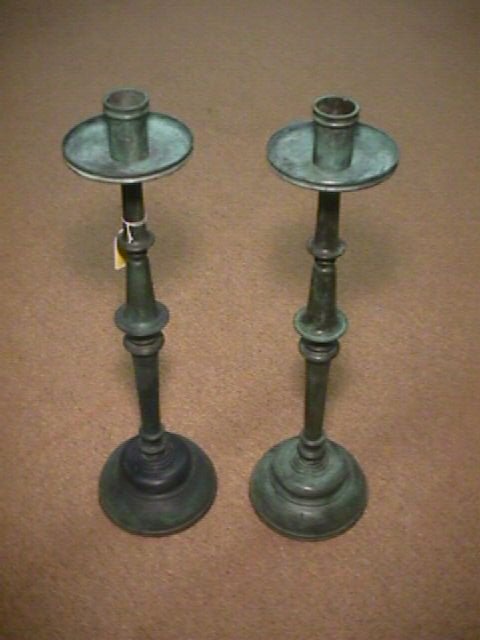 MAITLAND SMITH GREEN PAINTED TALL CANDLESTICKS