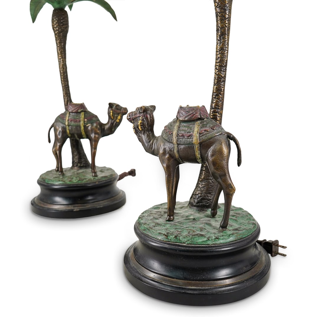 Maitland Smith Orientalist Bronze Camel Table Lamps