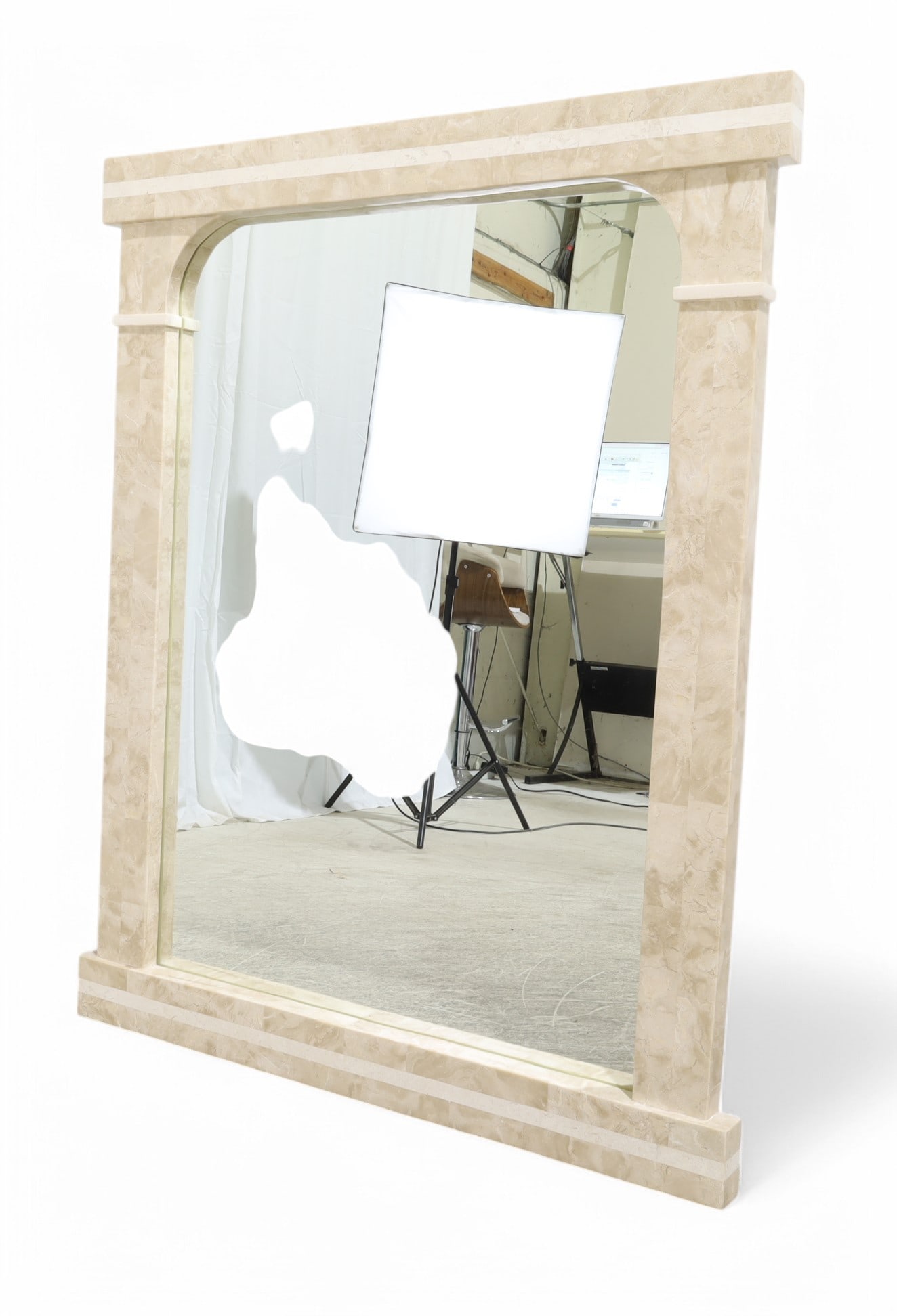 Maitland Smith Tessellated Stone Marble Fretwork Frame Wall Mirror. Decorator Style. Unmarked. MirroMaitland Smith Tessellated Stone Marble Fretwork Frame Wall Mirror. Decorator Style. Unmarked. Mirror is loose Dimensions: Height: 45.5 inches, Width: 32.25 inches. --- - We offer curbside delivery fo