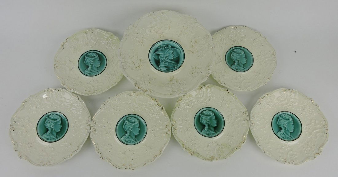 A composed lot of seven Dutch Delfts style variously polychrome decorated and glazed ceramic objectsFeb 24, 2026LOT OF VINTAGE GLASS SHADESFeb 26, 2026Lot of Antique Decorative French Porcelain PlatesFeb 22, 2026(5) Stoneware Crock LidsFeb 25, 2026LOT OF DANISH BING GRONDAHL SEAGULL PORCELAIN BOWLSFeb 28, 2026(13) FRENCH SARREGUEMINES MAJOLICA FRUIT DESSERT SERVICE7 days LeftSIX ANTIQUE MINIATURE PAINTINGS, PORTRAITS, ETC.Mar 07, 2026SEVEN ANTIQUE MINIATURE PORTRAIT PAINTINGSMar 07, 20267 Piece Hand Decorated Floral Dessert SetVintage Japanese Sauce Bowls - Set of 6Group of Majolica DishesMar 07, 2026COLLECTION OF PORTRAIT HAND CARVED SHELL CAMEOFeb 21, 2026H.B. & Cie Choisy Le Roi France Art Pottery Green Majolica Scenic Plate Set2 days LeftCOLLECTION OF PORTRAIT CARVED SHELL CAMEO MEDALLIONSFeb 22, 2026COLLECTION OF FEMALE PORTRAIT HAND CARVED SHELL CAMEOMar 01, 20264 Majolica PlattersFeb 26, 2026