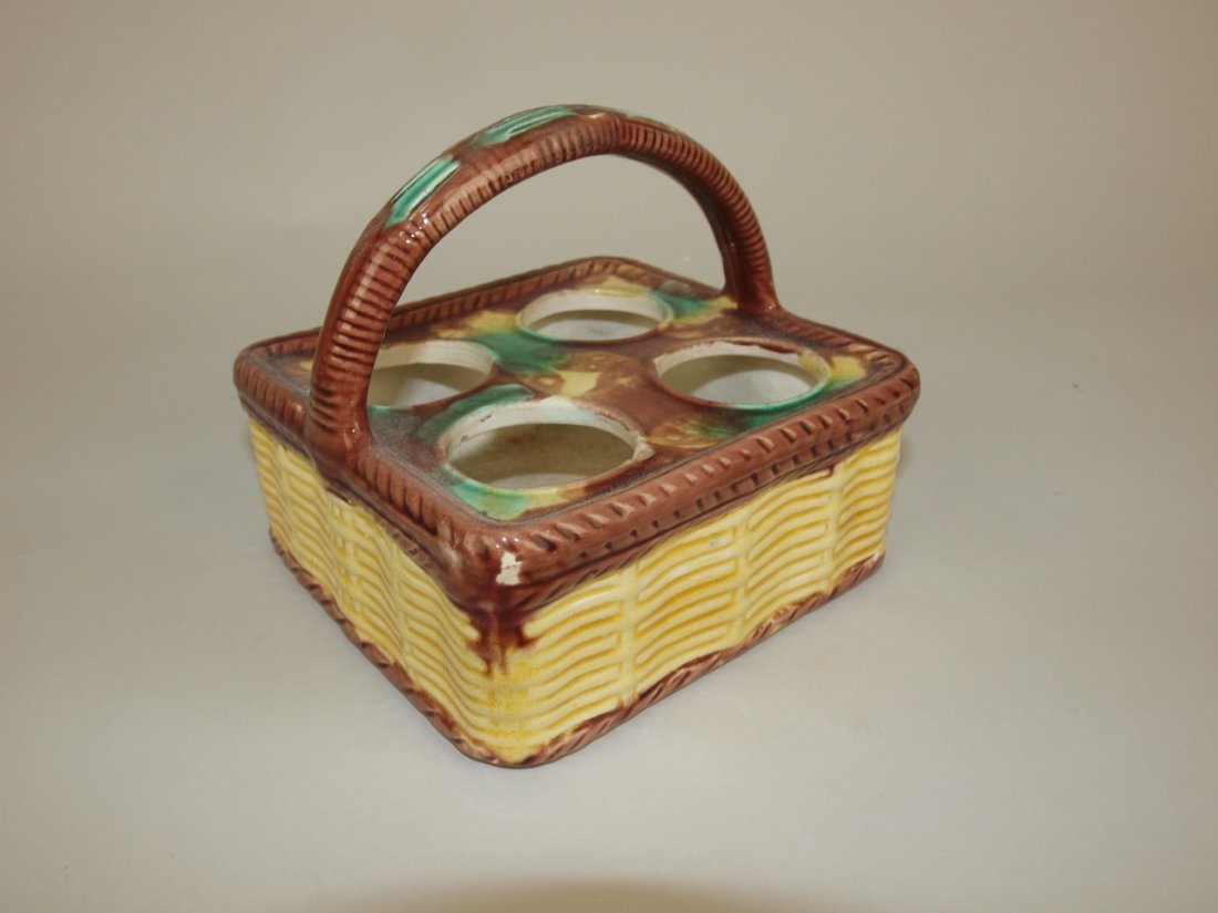Majolica basketweave egg basket