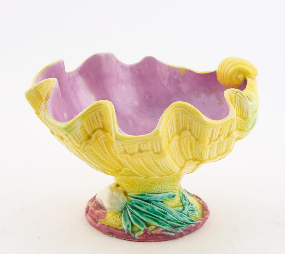 MAJOLICA BRIGHTLY COLORED SHELL FORM FOOTED TAZZA
