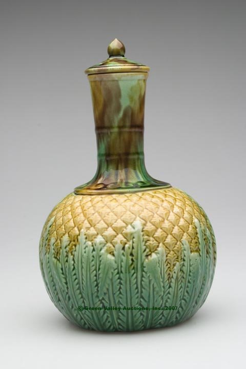 MAJOLICA CARAFE, Pineapple pattern, unmarked.. La