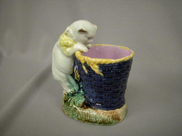 Majolica Figural Cat Basket