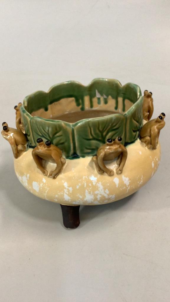 Lot of 2 His and Hers Frog Candle Sticks5 days Left(3) FRENCH MAJOLICA GLAZED JARDINIERES / PLANTERSFeb 20, 2026Vintage Weller Majolica Pottery Jardiniere & Pedestal SetMajolica Tripod Bowl, Unmarked, 5 3/4 x 11 3/4" Diameter.2 days LeftA Song Dynasty Yue kiln glazed frog-shaped water bowlFeb 28, 2026Two Chinese Sancai Majolica DucksFeb 17, 2026A Large Japanese Hirado Porcelain Company Toad SculptureFeb 15, 2026Majolica Lidded Trinket Box with Bird and FlowersFeb 20, 2026VINTAGE BELLEEK PORCELAIN FROG ON LILY PAD 5"1 day LeftWHIMSICAL CAST STONE FROG BIRDBATH 23"1 day LeftHand Crafted Ceramic 'Fish' Pocket Wall PlanterFeb 24, 2026Two Italian Glazed Earthenware Table Articles3 days LeftItalian Glazed Ceramic Footed PlanterFeb 16, 2026Wilford Dean Folk Pottery Figural Bowl6 days LeftVintage Porcelain Frog Cabbage PitcherFeb 17, 2026Isaac Walton Ware Royal Doutlon Fish Pot129 Lots Away