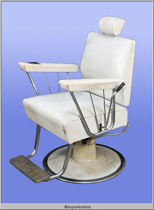 SoldTAKARA BELMONT Styling Makeup Leather ChairChair has tag which reads TAKARA BELMONT on underside. Piece has black toned leather upholstered seat & backrest. Base is silver toned & metal. Piece has foot rest area 37 inches tall 25 inches wide 3See Sold Price