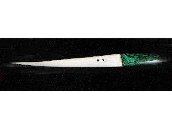 SoldTwo Antique Letter Openers - Malachite & SterlingTwo Antique Letter Openers - Malachite & Sterling. One with horn. Malachite handle opener measures 7 inches in length.See Sold Price