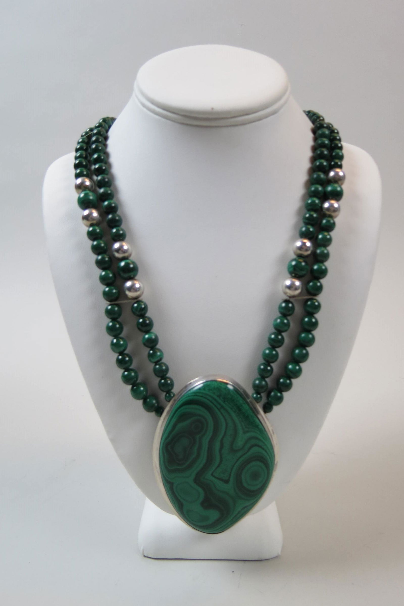 Vintage Sterling Malachite Beaded Necklace/Pendant, 17", Toggle Clasp, 1980's-1990's, SouthwesternChairish Auctions4.5(10.3k)$75
