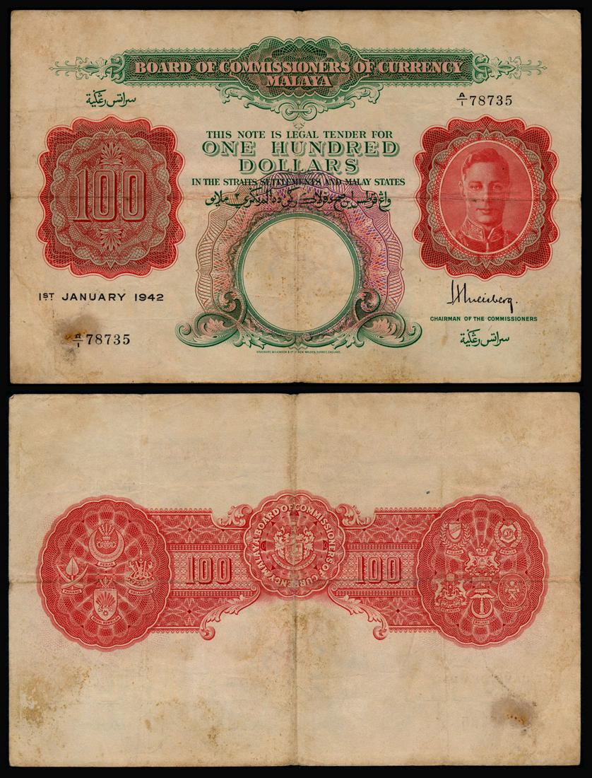 Malaya $100 1942 KGVI
