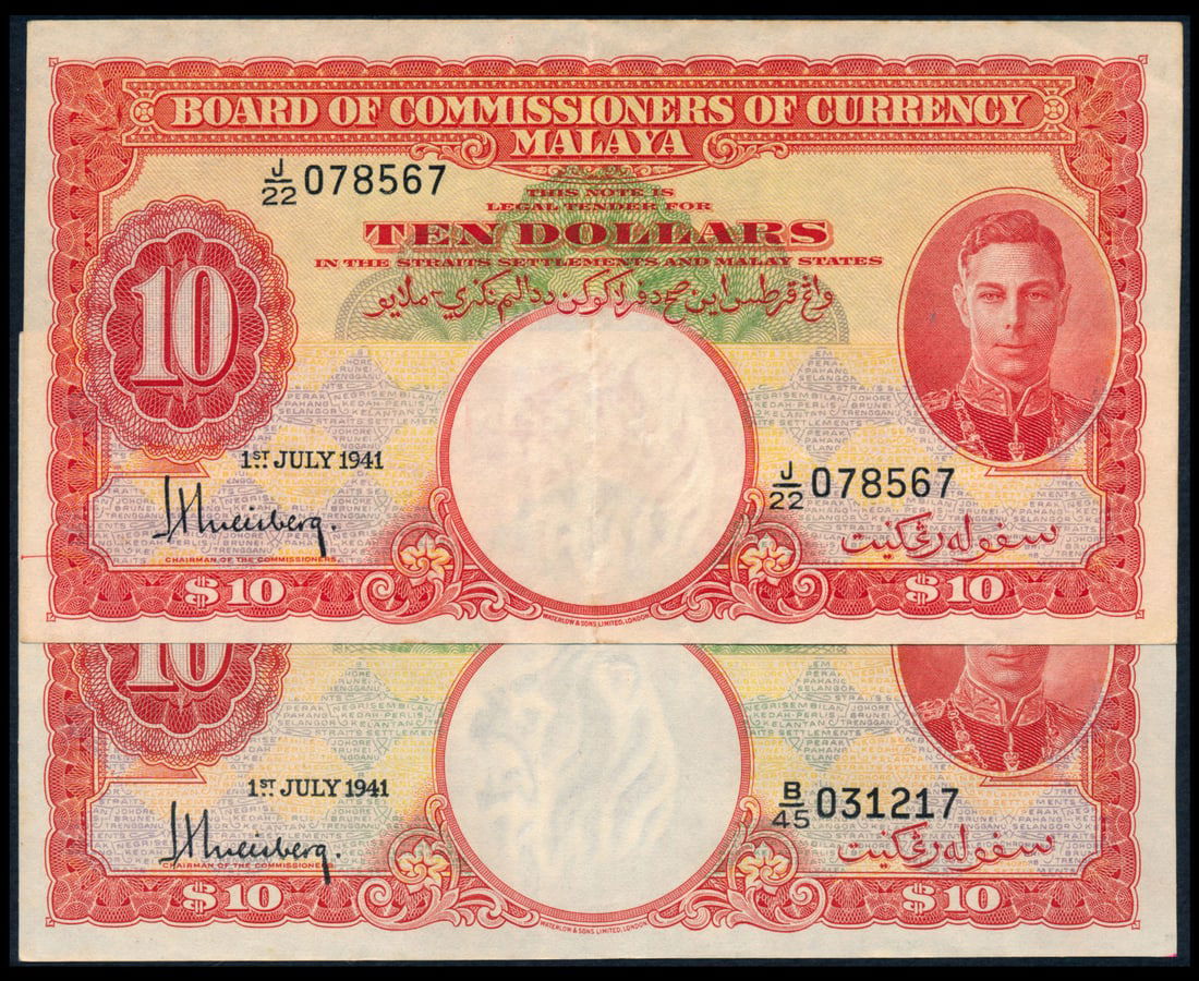 Malaya 2x$10 1941 KGVI
