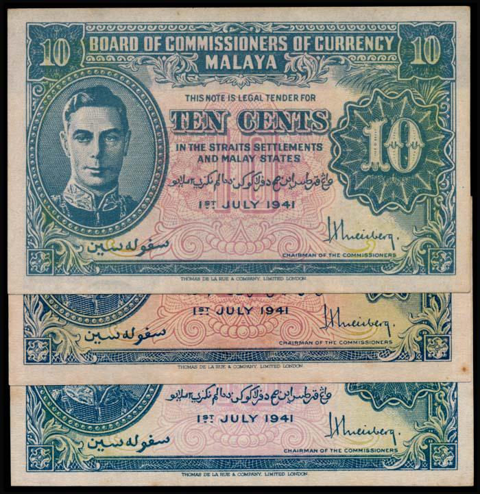 Malaya 3x10c 1941 KGVI